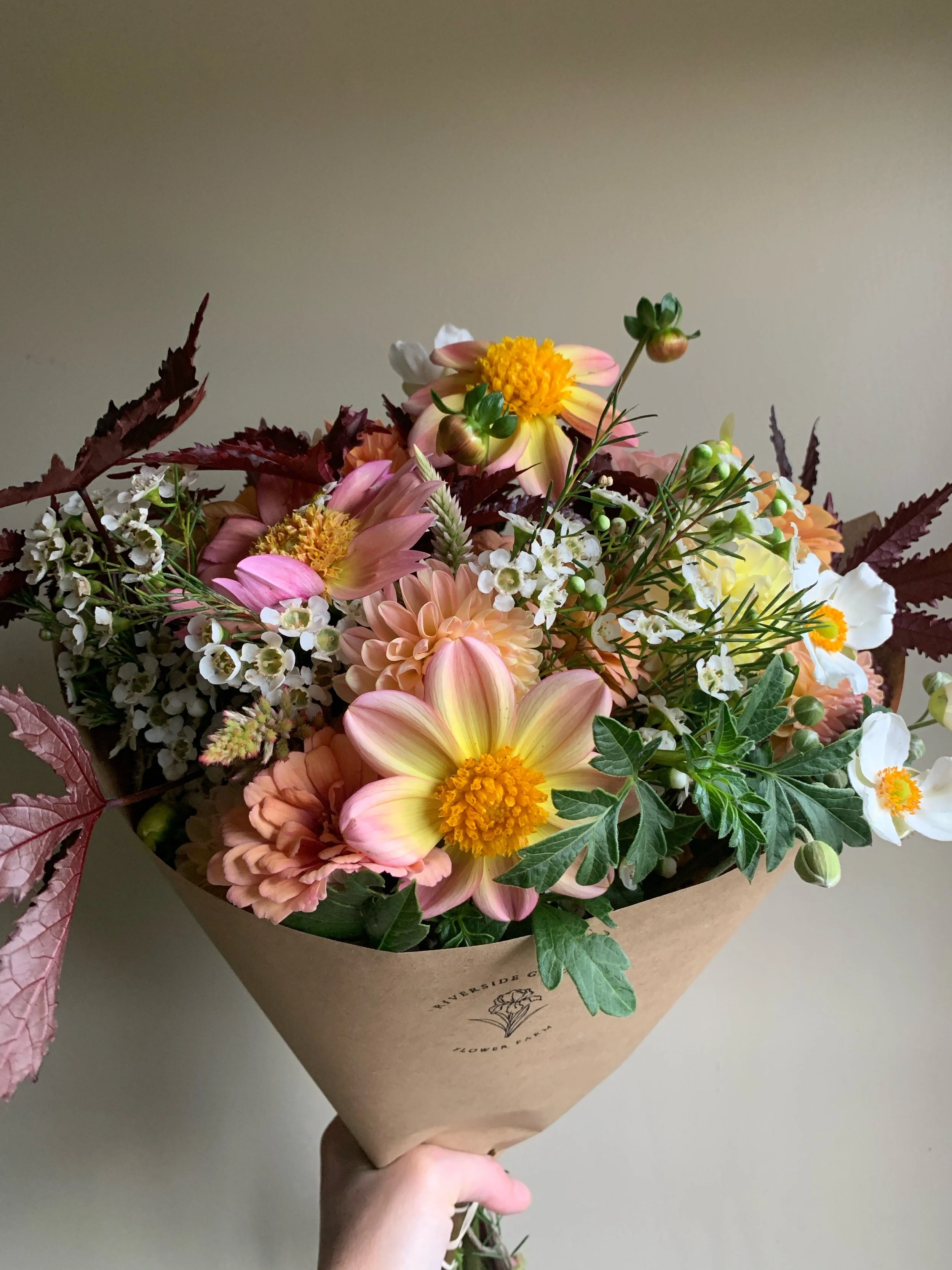 Categories: All Flower Subscriptions Fall/Winter Wreaths Shop All | Flower Subscriptions | Fall/Winter Wreaths | Fall Feathers Wreath Sale Price: $70.00 Original Price: $100.00 Sale Purchase Added! Mulberry Pie Wreath Sale Price: $70.00 Original Price: $100.00 Sale Purchase Added! Pumpkin Spice Wreath Sale Price: $70.00 Original Price: $100.00 Sold out Sold Out Added! Riverside Gardens Hat $24.99 Maroon Emerald Purchase Added! 2025 Late Summer/Fall 6- Bouquet Subscription $210.00 Sold out Sold Out Added! 2025 Late Summer/Fall 10 Week Flower Subscription $300.00 Sold out Sold Out Added!